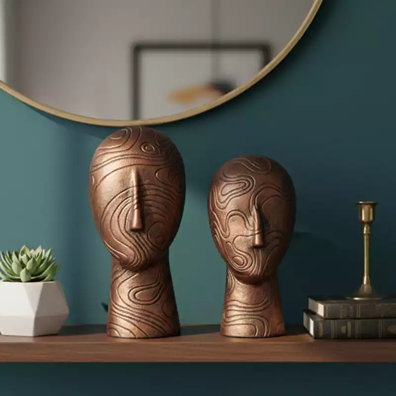 Sanatsal detaylarıyla dikkat çeken Dekoromi 2'li Kadın Suratı Heykel Biblo Seti, modern ev dekorasyonunun vazgeçilmez parçalarından biridir. Her biri özenle el boyaması 3D detaylarla hazırlanmıştır ve zarif yüz hatları sayesinde mekâna estetik bir atmosfer kazandırır. Dayanıklı polyester malzeme yapısı, uzun ömürlü kullanım sunarken raf, konsol veya masa üzerinde şık bir duruş sağlar.