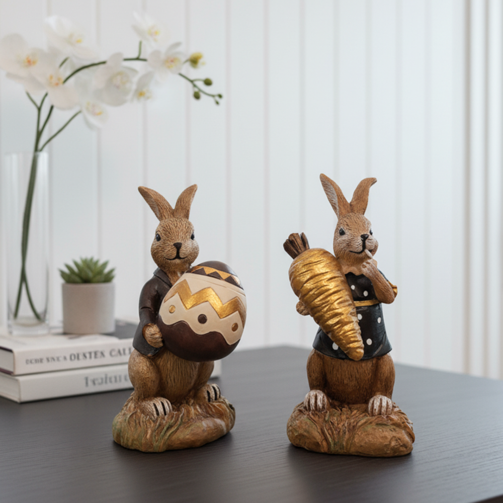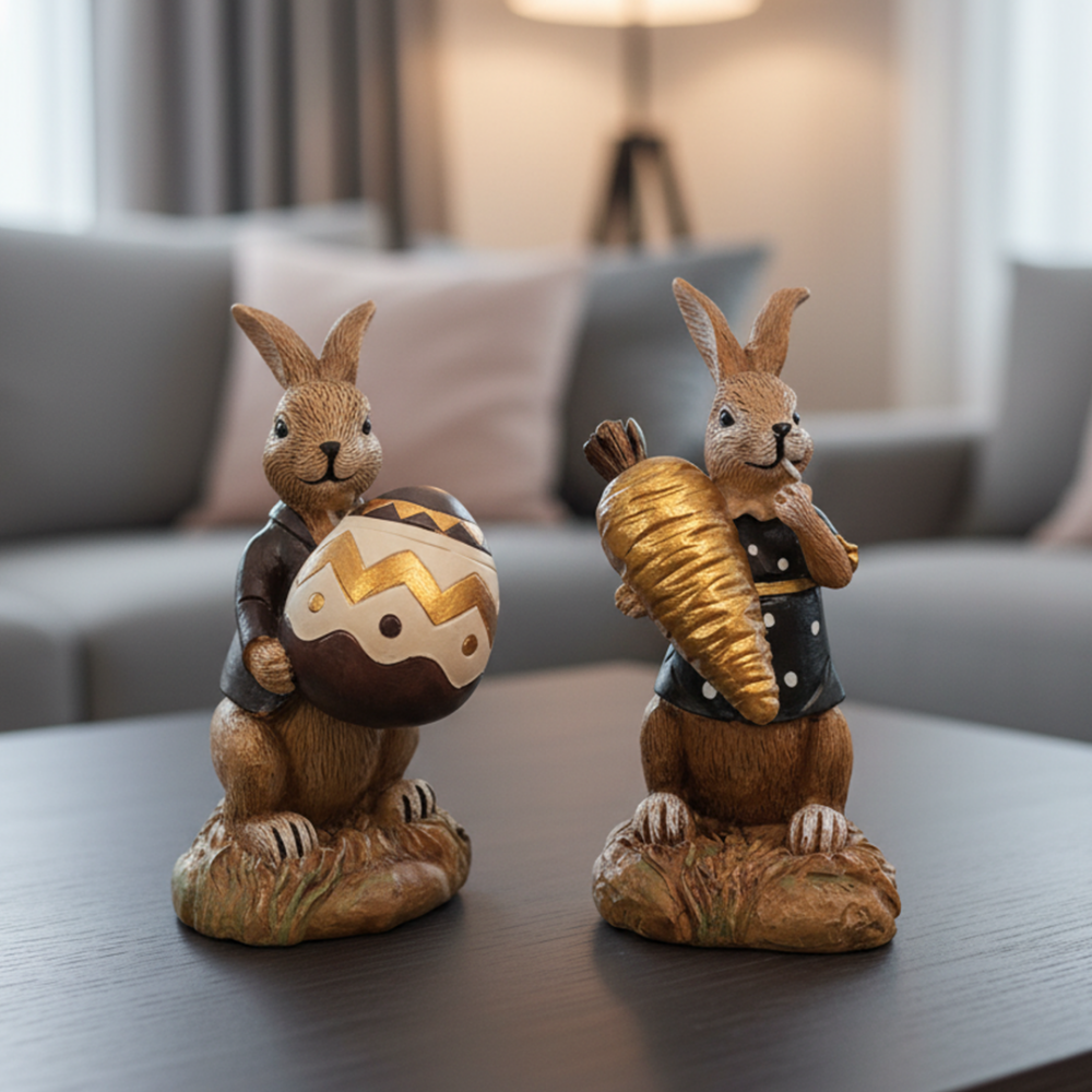 Dekoromi’nin özenle tasarladığı 2’li Sevimli Tavşan Biblo Seti, yaşam alanlarına sıcaklık ve neşe katan zarif bir dekoratif settir. Her biri titizlikle el boyaması olarak hazırlanmış bu sevimli tavşan figürleri, hem ev dekorasyonu hem de ofis dekorasyonu için ideal bir seçimdir. Kaliteli malzeme yapısı sayesinde uzun ömürlü kullanım sunarken, detaylı işçiliğiyle dikkat çeker.