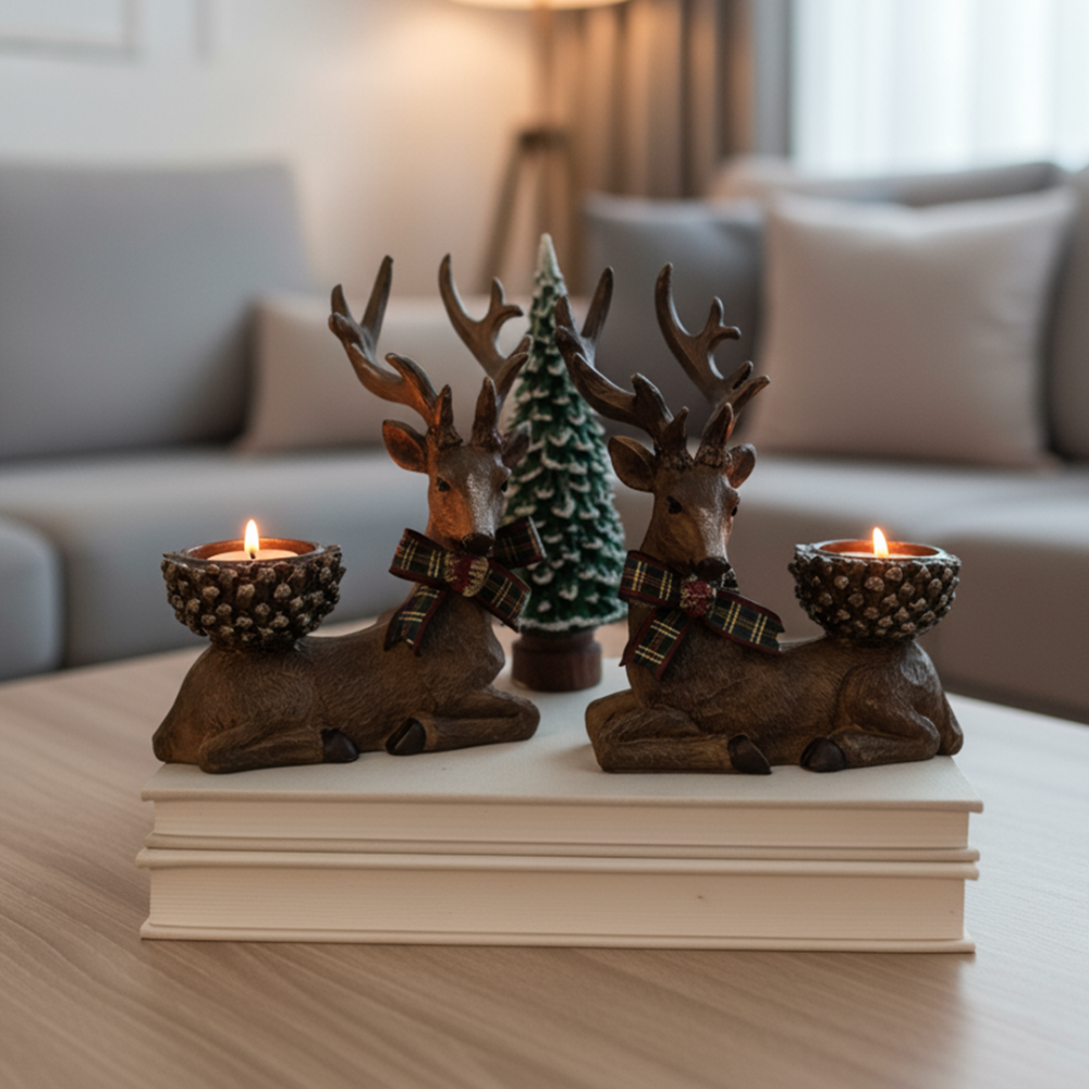 Dekoromi’nin özel tasarımı olan 3’lü Geyik Mumluk ve Çam Ağacı Seti, el boyaması detaylarıyla evinize doğanın zarafetini getirir. 18 cm yüksekliğinde, 16 cm genişliğinde ve 10 cm derinliğindeki bu dekoratif set, ev dekorasyonu alanında dikkat çekici bir bütünlük sağlar. Şık tasarımıyla ister salon, ister çalışma odası ya da yılbaşı konseptli dekorlarda kullanılabilir.
