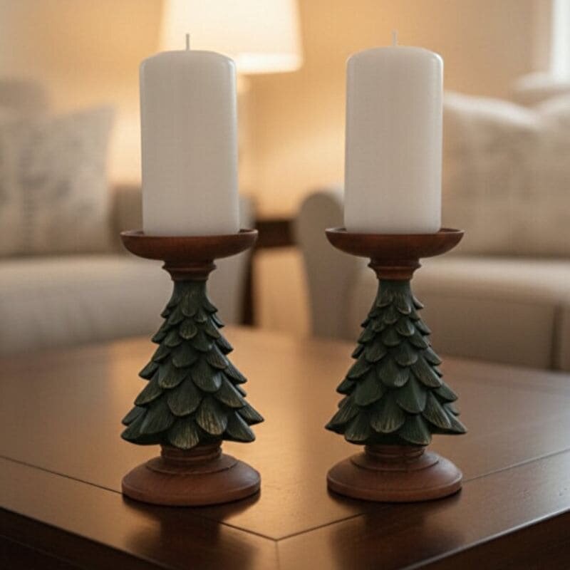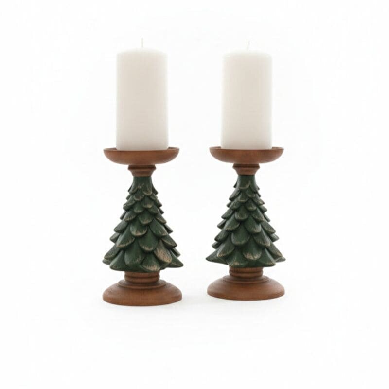 Dayanıklı polyester biblo malzemesinden üretilen bu mumluklar, detaylı dokusuyla gerçek bir çam ağacı formunu yansıtır. Her bir parça, el boyaması teknikleriyle özenle renklendirilmiş olup, lüks biblo standartlarında bir bitişe sahiptir. Biblo modelleri arasında zamansız tasarımıyla öne çıkan bu şamdanlar, mum ışığının sıcaklığını sanatsal bir çerçeveyle sunar.