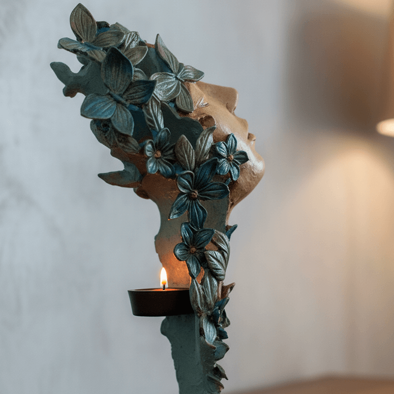 Dekoromi Çiçekli Kadın Mumluk Biblo: Zarafet ve Işığın Buluşması