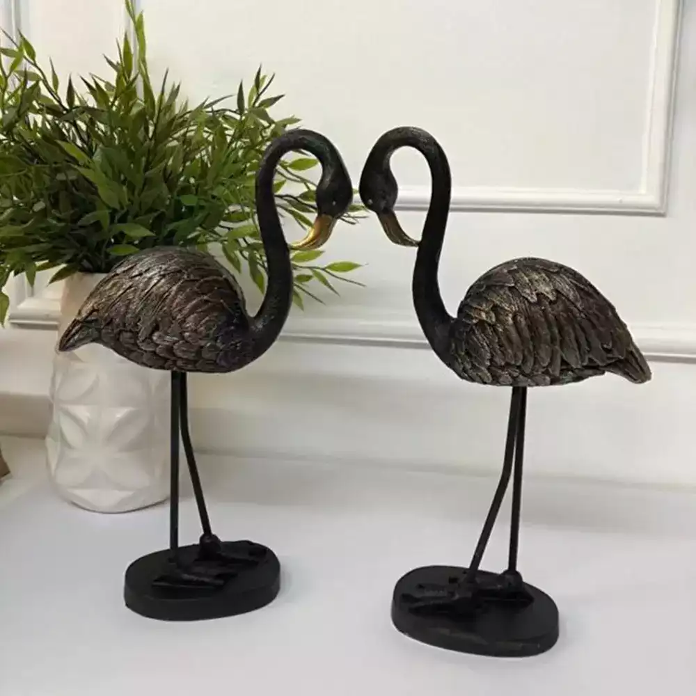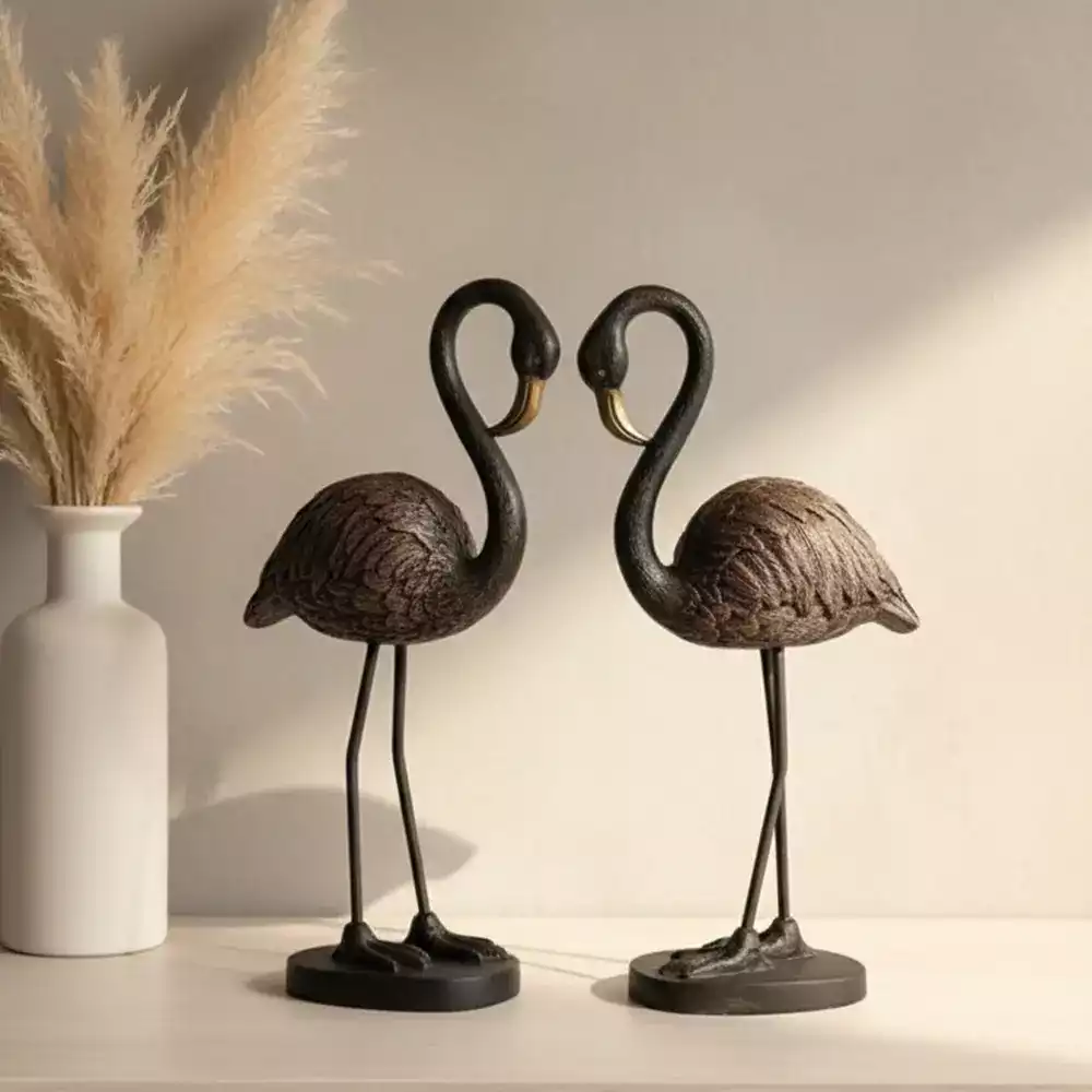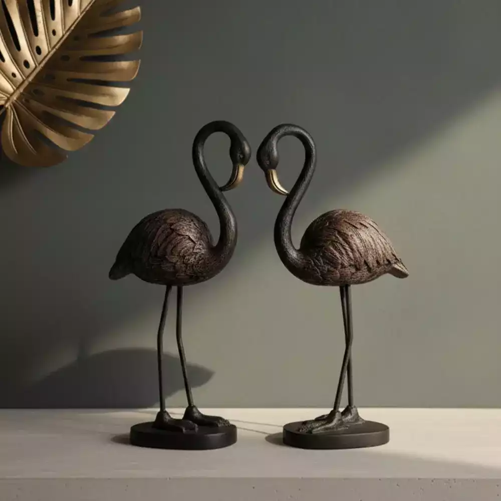 Yaşam alanlarınıza estetik ve zarafet katmanın en şık yolu: Dekoratif Flamingo Obje Biblo Seti. Modern ve lüks dekorasyon trendlerini takip edenler için özel olarak tasarlanan bu 2 parçalık set, evinizin atmosferini anında değiştirecek asil bir duruş sergiler. Yüksek kaliteli reçine malzemeden özenle üretilen flamingo objeler, detaylı hatları ve bronz-koyu renk tonlarının mükemmel uyumu sayesinde gerçekçi ve sofistike bir görünüm sunar. Bu iki zarif flamingo figürü, birbirine bakan duruşlarıyla uyumu, aşkı ve bağlılığı simgelerken, bulunduğu ortama huzurlu bir hava katar.