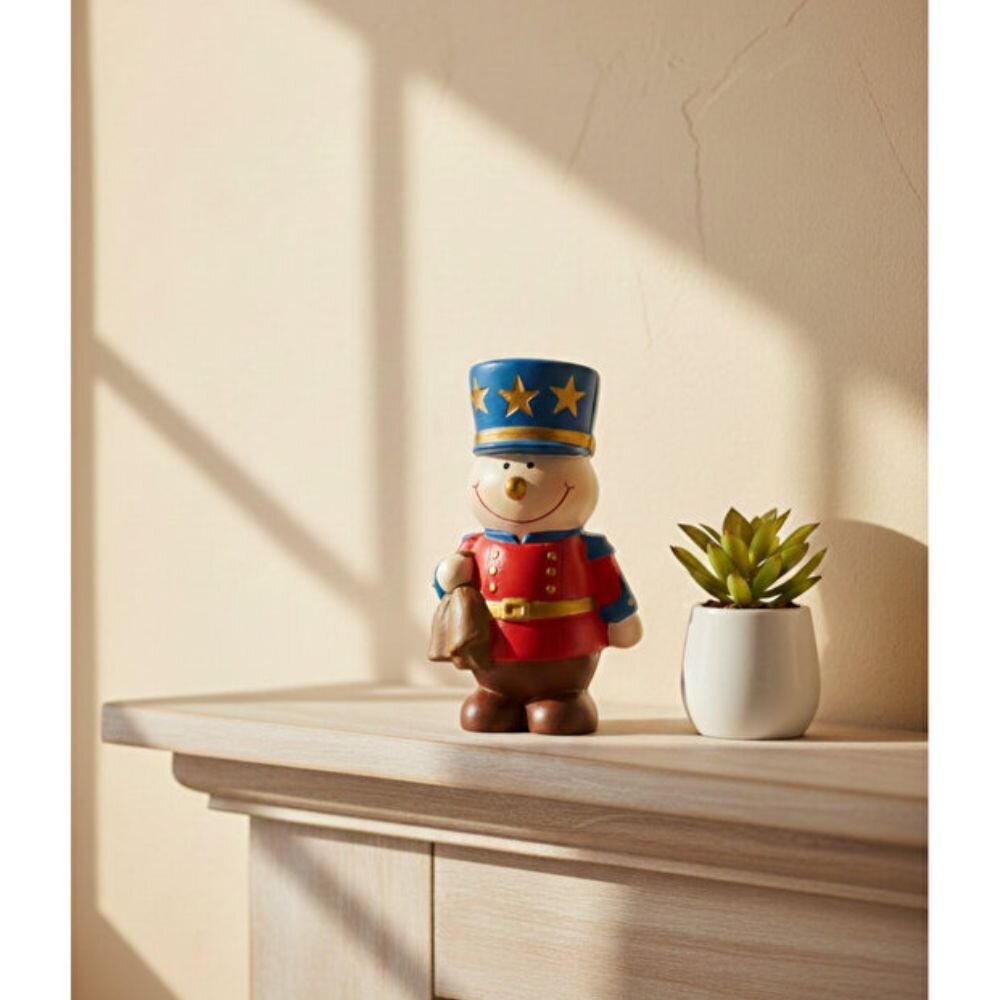 Bu sevimli kurşun asker, yüksek kalite standartlarına sahip polyester biblo materyalinden üretilmiştir. Ürünün üzerindeki her bir detay, kırmızının canlılığından altın rengi işlemelere kadar tamamen el boyaması işçiliği ile hayat bulmuştur. Lüks biblo segmentindeki bu parça, tombul hatları ve gülen yüz ifadesiyle klasikleşmiş biblo modelleri arasında hemen fark edilerek dekorasyonunuza samimiyet katar.