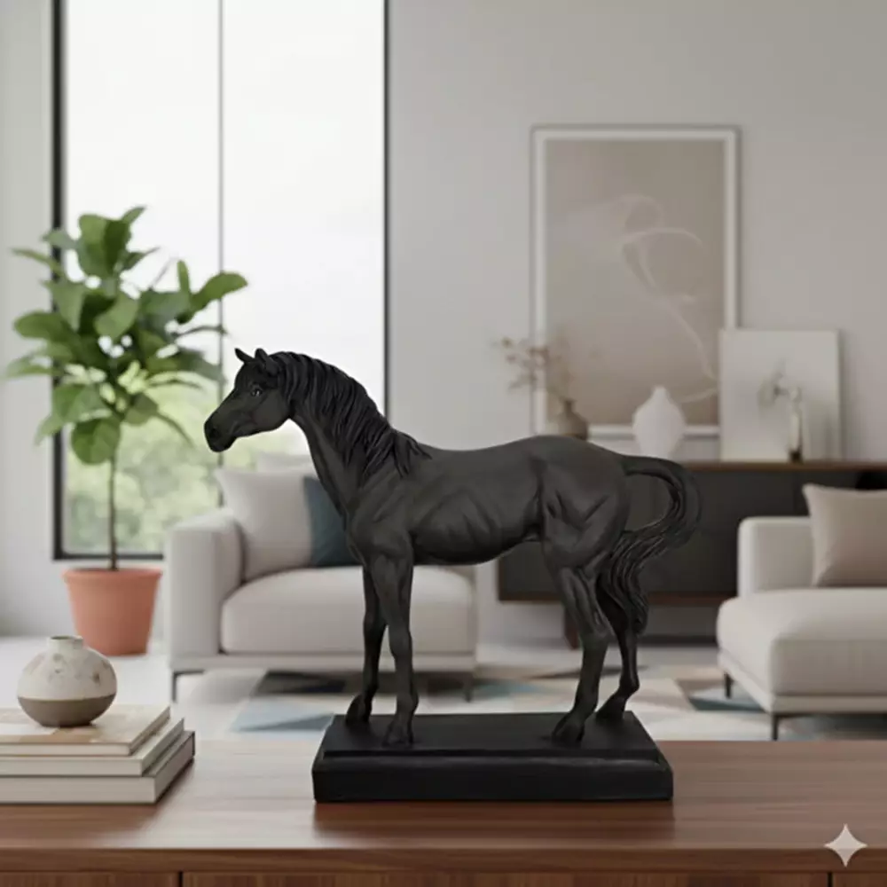 Zarafetin ve gücün simgesi olan Dekoromi Kaideli Siyah At Heykeli, el işçiliğiyle boyanmış detayları sayesinde bulunduğu ortama asil bir hava katar. Kaliteli polyester malzemeden üretilmiş bu dekoratif biblo, hem ev dekorasyonu hem de ofis dekorasyonu için mükemmel bir tamamlayıcıdır.