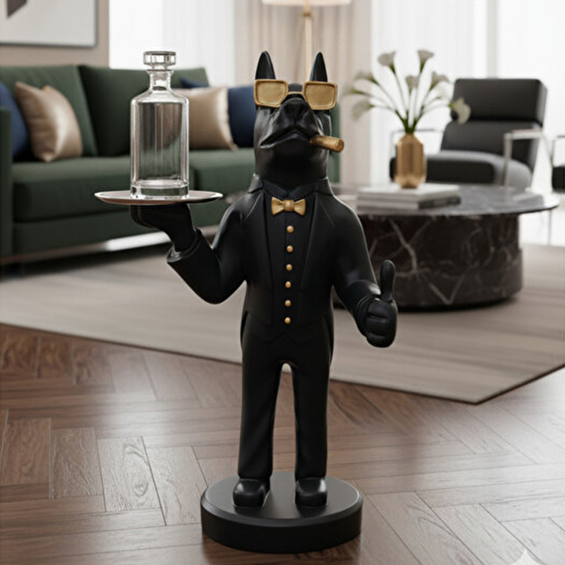 Dekoromi Lüks Fransız Buldog Tepsili Köpek Biblo, modern iç mekanlara karakter ve zarafet katmak için tasarlanmış özel bir dekoratif sehpa figürüdür. 70x35 cm ölçülerindeki bu gösterişli parça, detaylı el boyaması işçiliğiyle üretilmiş olup, gerçekçi 3D görünümüyle dikkat çeker. Koltuk yanı veya orta sehpa olarak kullanılabilen bu dekoratif obje, hem işlevsel hem de estetik bir unsur olarak öne çıkar. Dayanıklı malzemesi uzun ömürlü kullanım sağlar. Ev dekorasyonu için kusursuz bir tamamlayıcı olan bu parça, aynı zamanda özgün ve anlamlı bir hediyelik ev dekorasyon ürünü olarak değerlidir. Şık tasarımı sayesinde sevgililer günü hediyesi, yeni ev hediyesi veya doğum günü hediyesi olarak tercih edilebilir. Dekoromi’nin özel koleksiyonundaki bu biblo, bulunduğu ortama lüks ve sanatsal bir dokunuş kazandırır.