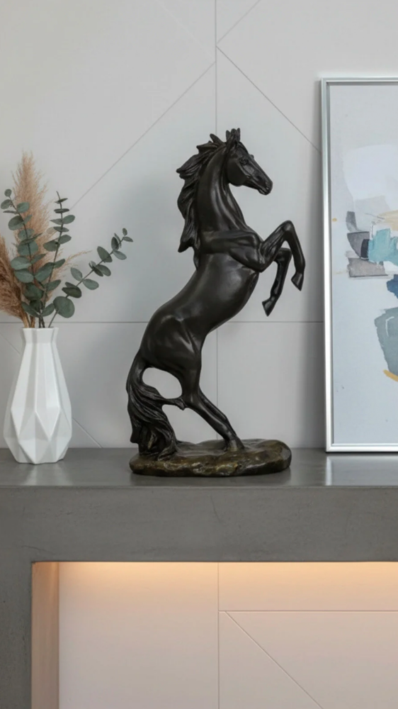 Dekoromi Şahlanan At Heykeli, gücü ve asaleti temsil eden tasarımıyla ev dekorasyonu alanında dikkat çeken özel bir parçadır. 35x18 cm ölçülerindeki bu büyük boy biblo, zarif duruşu ve dinamik formuyla her mekana hareket katar. Siyah renkli yüzeyi, detaylı el boyaması işçiliğiyle tamamlanmış olup, modern ve klasik tarzda dekore edilmiş alanlarda kolayca uyum sağlar. Salon, ofis, vitrin veya giriş alanlarında etkileyici bir atmosfer yaratır. Yüksek kaliteli malzeme yapısı sayesinde uzun ömürlü kullanım sunar. Estetik değeri kadar anlamıyla da öne çıkan bu dekoratif obje, aynı zamanda sevdiklerinize armağan edilebilecek özel bir hediyelik ev dekorasyon ürünüdür. Şık tasarımıyla sevgililer günü hediyesi, yeni ev hediyesi veya doğum günü hediyesi olarak ideal bir tercihtir. Dekoromi farkıyla üretilen bu heykel, mekanlara özgün bir karakter kazandırır.