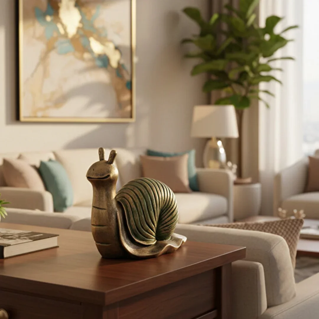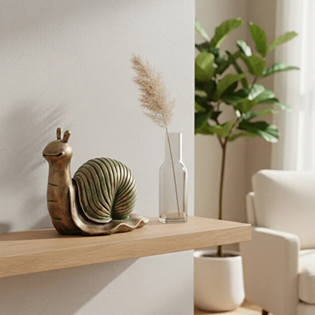 Sevimli Salyangoz Heykeli Biblo, 28x24 cm boyutlarıyla dikkat çeken, neşeli ve zarif bir objedir. Klasik dekoratif ürünler anlayışının dışına çıkarak, evinize ya da ofisinize sıcak ve pozitif bir atmosfer katmayı amaçlar. Bu biblo, doğanın huzurlu ritmini lüks bir estetikle birleştirir.
